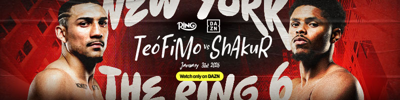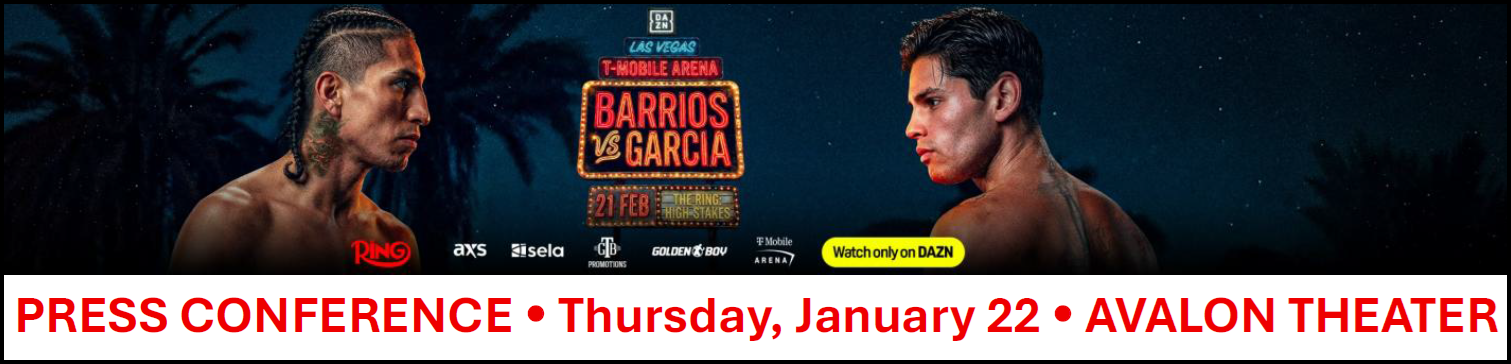 Credential Request Deadline: January 19, 12 Noon EST ONLINE CREDENTIAL FORM TWO HUGE WORLD TITLE FIGHTS ADDED TO 'THE RING 6' EXTRAVAGANZA ANNOUNCEMENT NEWS RELEASE |